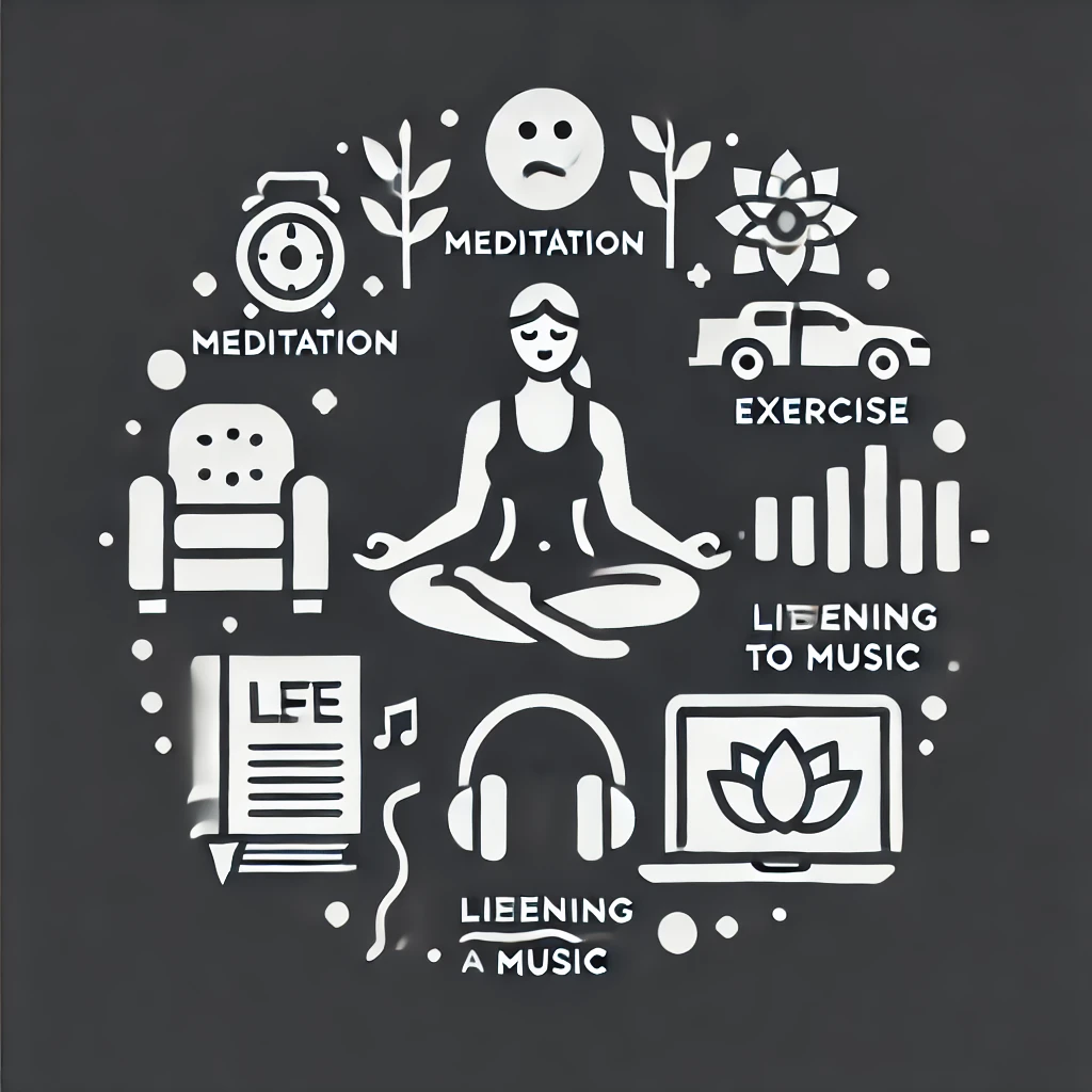 A: 심호흡, 명상, 음악 듣기, 가벼운 산책이 효과적입니다.