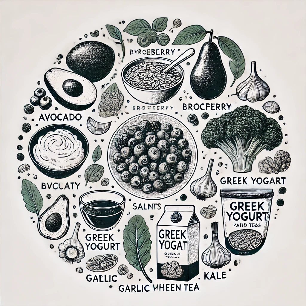 이 식품들은 각기 다른 영양소를 지니고 있어, 다양하게 섭취하면 더욱 좋은 시너지 효과를 발휘할 수 있어요. 예를 들어, **연어는 오메가3 지방산**, **블루베리는 항산화 물질**, **마늘은 항염 성분**이 풍부하죠. 이 중 몇 가지는 평소 식단에 쉽게 넣을 수 있어 활용도도 매우 높답니다.